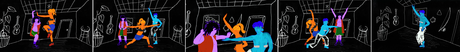 Line up com frames de algumas cenas animadas por mim no curta-metragem "Marimbã está acontecendo".